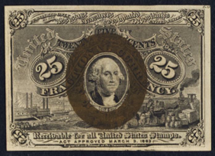 | See Also | If your note doesn't match try: 1. 1862 1st Issue 25 Cent Fractional Specimens 2. 1863 3rd Issue 25 Cent Fractional Specimens 3. 1862 1st Issue 25 Cent Fractional Currency 4. 1863 2nd Issue 25 Cent Fractional Currency 5. 1863 3rd Issue 25 Cent Fractional Currency 6. 1863 4th Issue 25 Cent Fractional Currency |