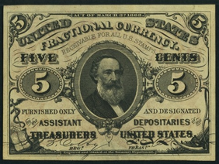| See Also | If your note doesn't match try: 1. 1862 1st Issue 5 Cent Fractional Currency 2. 1863 2nd Issue 5 Cent Fractional Currency 3. 1862 1st Issue 5 Cent Fractional Specimens 4. 1863 2nd Issue 5 Cent Fractional Specimens 5. 1863 3rd Issue 5 Cent Fractional Specimens |