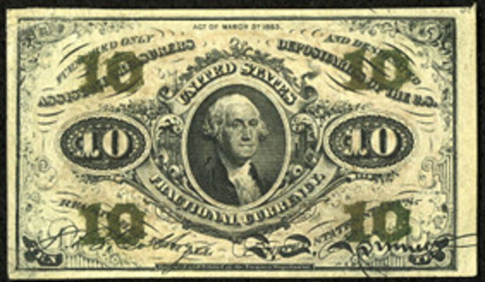| See Also | If your note doesn't match try: 1. 1862 1st Issue 10 Cent Fractional Currency 2. 1863 2nd Issue 10 Cent Fractional Currency 3. 1863 4th Issue 10 Cent Fractional Currency 4. 1862 1st Issue 10 Cent Fractional Specimens |