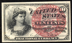 | See Also | If your note doesn't match try: 1. 1862 1st Issue 10 Cent Fractional Currency 2. 1863 2nd Issue 10 Cent Fractional Currency 3. 1863 3rd Issue 10 Cent Fractional Currency 4. 1862 1st Issue 10 Cent Fractional Specimens |