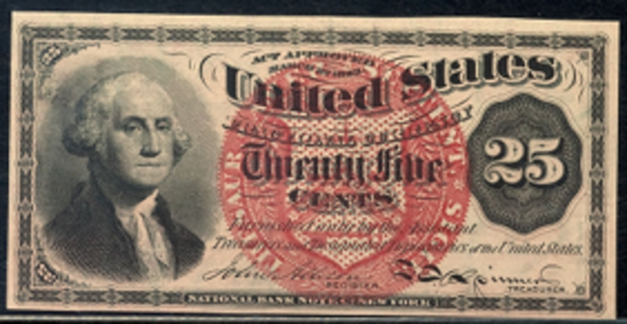 | See Also | If your note doesn't match try: 1. 1862 1st Issue 25 Cent Fractional Currency 2. 1863 2nd Issue 25 Cent Fractional Currency 3. 1863 3rd Issue 25 Cent Fractional Currency 4. 1862 1st Issue 25 Cent Fractional Specimens 5. 1863 2nd Issue 25 Cent Fractional Specimens |