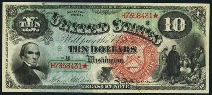 | See Also | If your note doesn't match try: 1. 1875 $10 Legal Tender 2. 1864 $10 Compound Interest Treasury Note 3. 1864 $10 Interest Bearing Note 4. 1875 $10 National Bank Notes 5. 1870 $10 The National Gold Bank Note of California 6. 1872 $10 The National Gold Bank Note of California 7. 1873 $10 The National Gold Bank Note of California |
