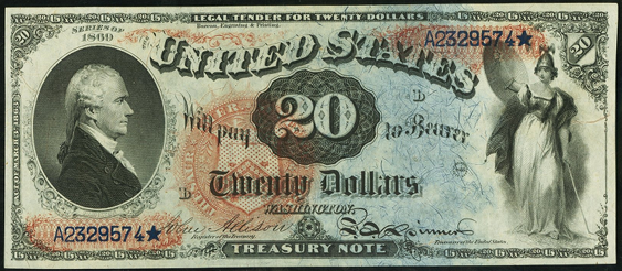 | See Also | If your note doesn't match try: 1. 1875 $20 Legal Tender 2. 1864 $20 Compound Interest Treasury Note 3. 1864 $20 Interest Bearing Note 4. 1875 $20 National Bank Notes 5. 1870 $20 The National Gold Bank Note of California 6. 1875 $20 The National Gold Bank Note of California 7. 1872 $20 The National Gold Bank Note of California |