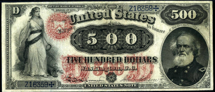 | See Also | If your note doesn't match try: 1. 1869 $500 Legal Tender 2. 1875 $500 Legal Tender 3. 1878 $500 Legal Tender 4. 1880 $500 Legal Tender |