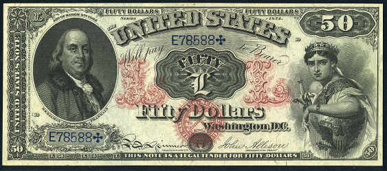 | See Also | If your note doesn't match try: 1. 1874 $50 Legal Tender 2. 1878 $50 Legal Tender 3. 1880 $50 Legal Tender 4. 1882 $50 Gold Certificate |