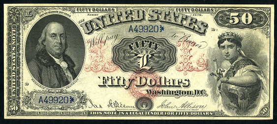 | See Also | If your note doesn't match try: 1. 1874 $50 Legal Tender 2. 1875 $50 Legal Tender 3. 1880 $50 Legal Tender 4. 1882 $50 Gold Certificate |