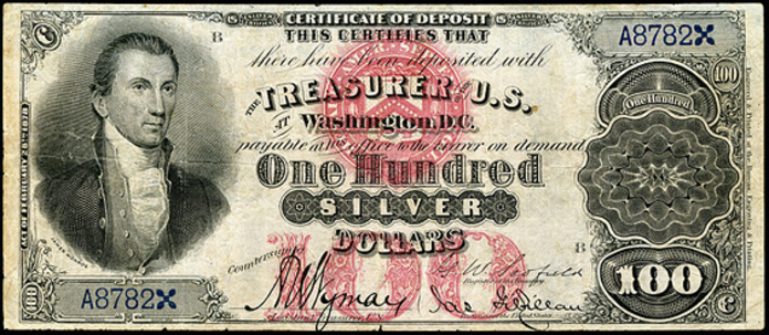 | See Also | If your note doesn't match try: 1. 1880 $100 Silver Certificates 2. 1875 $100 Gold Certificate 3. 1882 $100 Gold Certificate |