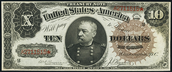 | Example Rarity | Type Note, signatures Rosecrans - Nebeker with Large Brown seal. Comment: Great find, note is highly collectible. Notes in new condition up to $10000. 3 |