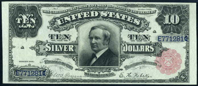 | See Also | If your note doesn't match try: 1. 1886 $10 Silver Certificates 2. 1890 $10 Treasury Note 3. 1891 $10 Treasury Note |