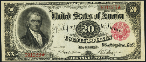 | See Also | If your note doesn't match try: 1. 1890 $20 Treasury Note 2. 1886 $20 Silver Certificates 3. 1891 $20 Silver Certificates |