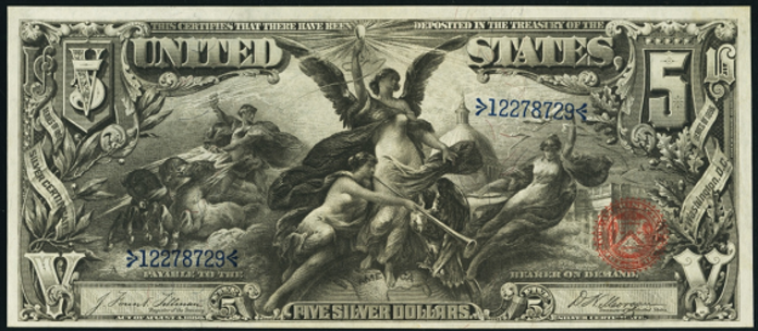 | See Also | If your note doesn't match try: 1. 1891 $5 Silver Certificates 2. 1899 $5 Silver Certificates 3. 1902 $5 National Bank Notes 4. 1891 $5 Treasury Note |