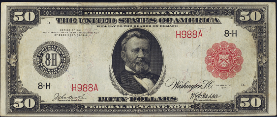 | See Also | If your note doesn't match try: 1. 1918 $50 Federal Reserve Bank Note 2. 1913 $50 Gold Certificate 3. 1922 $50 Gold Certificate |