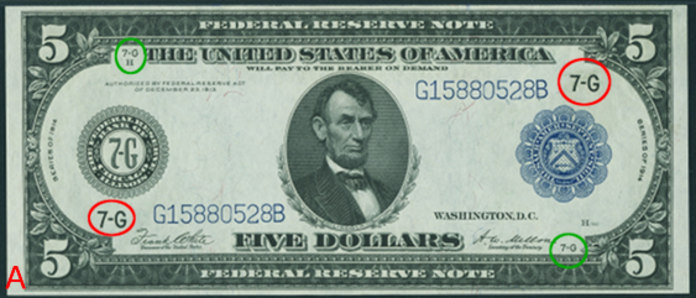 | See Also | If your note doesn't match try: 1. 1918 $5 Federal Reserve Bank Note 2. 1915 $5 Federal Reserve Bank Note |