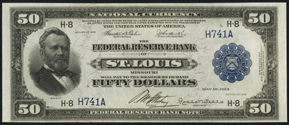 | Varieties | One Bank: 1. St. Louis (Only bank that issued $50 Federal Reserve Bank Note.) |