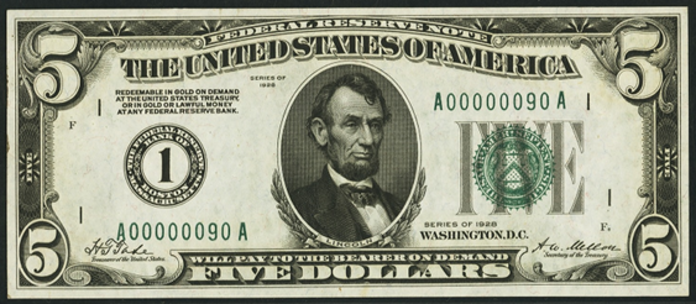 | See Also | If your note doesn't match try: 1. 1928A $5 Federal Reserve Note 2. 1928B $5 Federal Reserve Note 3. 1928C $5 Federal Reserve Note 4. 1928D $5 Federal Reserve Note 5. 1934 $5 Federal Reserve Note 6. 1934A $5 Federal Reserve Note |