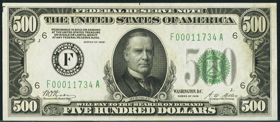 | See Also | If your note doesn't match try: 1. 1934 $500 Federal Reserve Note 2. 1934A $500 Federal Reserve Note 3. 1934B $500 Federal Reserve Note 4. 1934C $500 Federal Reserve Note 5. 1928 $500 Gold Certificate |
