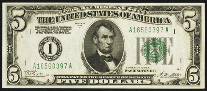 | See Also | If your note doesn't match try: 1. 1928 $5 Federal Reserve Note 2. 1928A $5 Federal Reserve Note 3. 1928B $5 Federal Reserve Note 4. 1928C $5 Federal Reserve Note 5. 1928D $5 Federal Reserve Note 6. 1934 $5 Federal Reserve Note 7. 1934A $5 Federal Reserve Note |