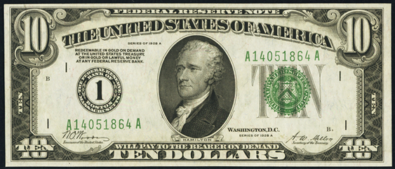 | See Also | If your note doesn't match try: 1. 1928 $10 Federal Reserve Note 2. 1928A $10 Federal Reserve Note 3. 1928B $10 Federal Reserve Note 4. 1928C $10 Federal Reserve Note 5. 1934 $10 Federal Reserve Note 6. 1934A $10 Federal Reserve Note 7. 1934B $10 Federal Reserve Note |