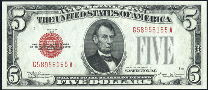 | See Also | If your note doesn't match try: 1. 1928 $5 Legal Tender 2. 1928A $5 Legal Tender 3. 1928B $5 Legal Tender 4. 1928C $5 Legal Tender 5. 1928D $5 Legal Tender 6. 1928E $5 Legal Tender 7. 1928F $5 Legal Tender 8. 1929 $5 Federal Reserve Bank Note |