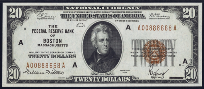 | See Also | If your note doesn't match try: 1. 1928 $20 Federal Reserve Note 2. 1928A $20 Federal Reserve Note 3. 1928B $20 Federal Reserve Note 4. 1928C $20 Federal Reserve Note 5. 1934 $20 Federal Reserve Note 6. 1934A $20 Federal Reserve Note |