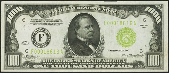 | See Also | If your note doesn't match try: 1. 1934 $1000 Gold Certificate 2. 1934A $1000 Federal Reserve Note 3. 1934C $1000 Federal Reserve Note |