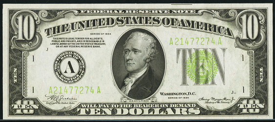 | See Also | If your note doesn't match try: 1. 1934A $10 WW2 Brown Seal 2. 1934 $10 WW2 Yellow Seal 3. 1934A $10 WW2 Yellow Seal 4. 1933 $10 Silver Certificates 5. 1933A $10 Silver Certificates 6. 1934 $10 Silver Certificates 7. 1934A $10 Silver Certificates 8. 1934B $10 Silver Certificates |
