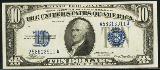 | See Also | If your note doesn't match try: 1. 1934A $10 WW2 Brown Seal 2. 1934 $10 WW2 Yellow Seal 3. 1934A $10 WW2 Yellow Seal 4. 1933 $10 Silver Certificates 5. 1933A $10 Silver Certificates 6. 1934A $10 Silver Certificates 7. 1934B $10 Silver Certificates |
