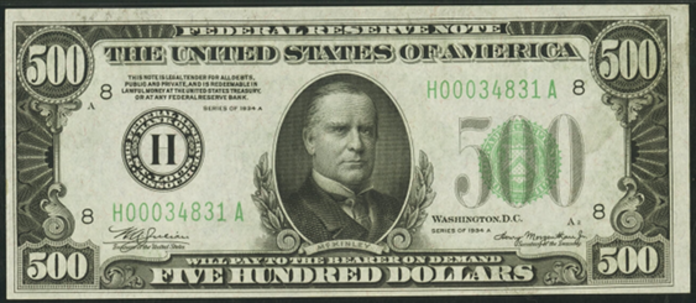 | See Also | If your note doesn't match try: 1. 1934 $500 Federal Reserve Note 2. 1934A $500 Federal Reserve Note 3. 1934B $500 Federal Reserve Note 4. 1934C $500 Federal Reserve Note |