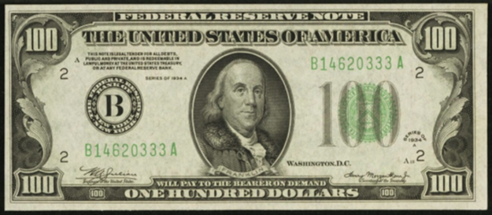 | See Also | If your note doesn't match try: 1. 1929 $100 National Bank Notes 2. 1934 $100 Gold Certificate 3. 1934 $100 Federal Reserve Note 4. 1934A $100 Federal Reserve Note 5. 1934B $100 Federal Reserve Note 6. 1934C $100 Federal Reserve Note 7. 1934D $100 Federal Reserve Note |