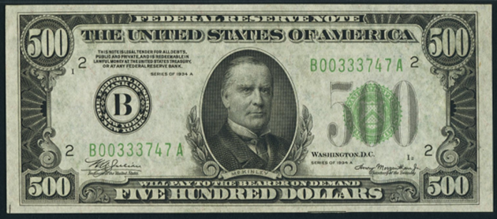 | See Also | If your note doesn't match try: 1. 1934 $500 Federal Reserve Note 2. 1934A $500 Federal Reserve Note 3. 1934B $500 Federal Reserve Note 4. 1934C $500 Federal Reserve Note |