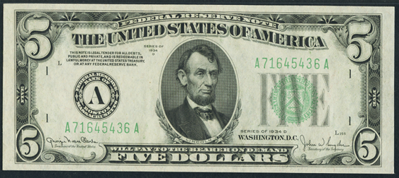 1934D $5 Green Seal Federal Reserve Note Value – How much is 1934D $5 Bill Worth?
