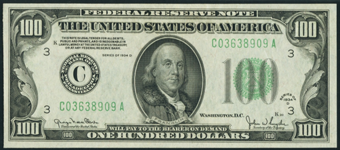 | See Also | If your note doesn't match try: 1. 1929 $100 National Bank Notes 2. 1934 $100 Gold Certificate 3. 1934 $100 Federal Reserve Note 4. 1934A $100 Federal Reserve Note 5. 1934B $100 Federal Reserve Note 6. 1934C $100 Federal Reserve Note 7. 1934D $100 Federal Reserve Note |