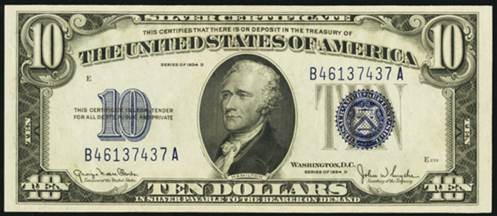| See Also | If your note doesn't match try: 1. 1934A $10 WW2 Brown Seal 2. 1934 $10 WW2 Yellow Seal 3. 1934A $10 WW2 Yellow Seal 4. 1933 $10 Silver Certificates 5. 1933A $10 Silver Certificates 6. 1934 $10 Silver Certificates 7. 1934A $10 Silver Certificates 8. 1934B $10 Silver Certificates |