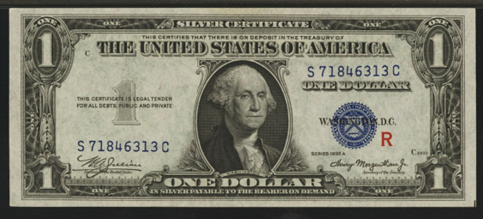 | See Also | If your note doesn't match try: 1. 1935A $1 WW2 Brown Seal 2. 1935A $1 WW2 Yellow Seal 3. 1934 $1 Silver Certificates 4. 1935 $1 Silver Certificates 5. 1935A $1 Silver Certificates 6. 1935AR $1 Silver Certificates 7. 1935AS $1 Silver Certificates 8. 1935B $1 Silver Certificates |