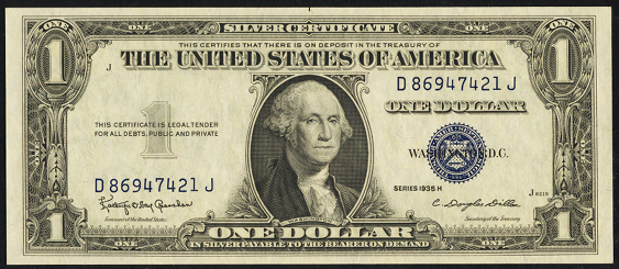 | See Also | If your note doesn't match try: 1. 1935A $1 WW2 Brown Seal 2. 1935A $1 WW2 Yellow Seal 3. 1934 $1 Silver Certificates 4. 1935 $1 Silver Certificates 5. 1935A $1 Silver Certificates 6. 1935AR $1 Silver Certificates 7. 1935AS $1 Silver Certificates 8. 1935B $1 Silver Certificates |