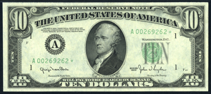 | See Also | If your note doesn't match try: 1. 1950A $10 Federal Reserve Note 2. 1950B $10 Federal Reserve Note 3. 1950C $10 Federal Reserve Note 4. 1950D $10 Federal Reserve Note 5. 1950E $10 Federal Reserve Note 6. 1953 $10 Silver Certificates 7. 1953A $10 Silver Certificates |
