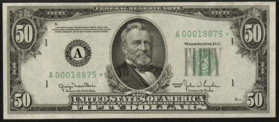 | See Also | If your note doesn't match try: 1. 1950 $50 Federal Reserve Note 2. 1950A $50 Federal Reserve Note 3. 1950B $50 Federal Reserve Note 4. 1950C $50 Federal Reserve Note 5. 1950D $50 Federal Reserve Note 6. 1950E $50 Federal Reserve Note |