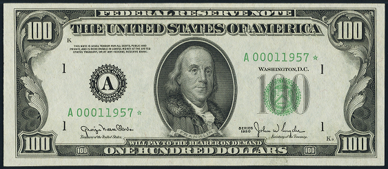 | See Also | If your note doesn't match try: 1. 1950 $100 Federal Reserve Note 2. 1950A $100 Federal Reserve Note 3. 1950B $100 Federal Reserve Note 4. 1950C $100 Federal Reserve Note 5. 1950D $100 Federal Reserve Note 6. 1950E $100 Federal Reserve Note |