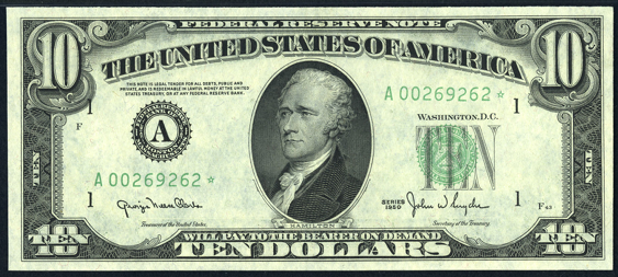 | See Also | If your note doesn't match try: 1. 1950 $10 Federal Reserve Note 2. 1950A $10 Federal Reserve Note 3. 1950B $10 Federal Reserve Note 4. 1950C $10 Federal Reserve Note 5. 1950D $10 Federal Reserve Note 6. 1950E $10 Federal Reserve Note 7. 1953 $10 Silver Certificates 8. 1953A $10 Silver Certificates |