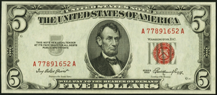 | See Also | If your note doesn't match try: 1. 1953A $5 Legal Tender 2. 1953B $5 Legal Tender 3. 1953C $5 Legal Tender 4. 1950 $5 Federal Reserve Note 5. 1950A $5 Federal Reserve Note 6. 1950B $5 Federal Reserve Note 7. 1950C $5 Federal Reserve Note |