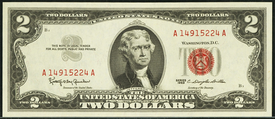 How much is my 1963 red $2 bill worth today