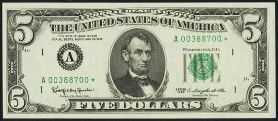| See Also | If your note doesn't match try: 1. 1969 $5 Federal Reserve Note 2. 1969A $5 Federal Reserve Note 3. 1969B $5 Federal Reserve Note 4. 1969C $5 Federal Reserve Note 5. 1974 $5 Federal Reserve Note 6. 1977 $5 Federal Reserve Note 7. 1977A $5 Federal Reserve Note |