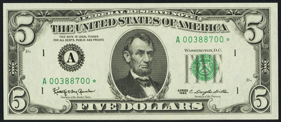 | See Also | If your note doesn't match try: 1. 1974 $5 Federal Reserve Note 2. 1977 $5 Federal Reserve Note 3. 1977A $5 Federal Reserve Note 4. 1981 $5 Federal Reserve Note 5. 1982 $5 Federal Reserve Note 6. 1981A $5 Federal Reserve Note 7. 1985 $5 Federal Reserve Note |