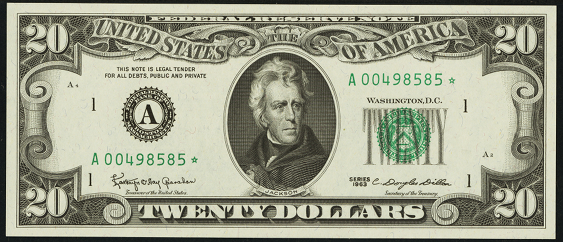| See Also | If your note doesn't match try: 1. 1985 $20 Federal Reserve Note 2. 1988A $20 Federal Reserve Note 3. 1990 $20 Federal Reserve Note 4. 1993 $20 Federal Reserve Note 5. 1995 $20 Federal Reserve Note 6. 1996 $20 Federal Reserve Note |