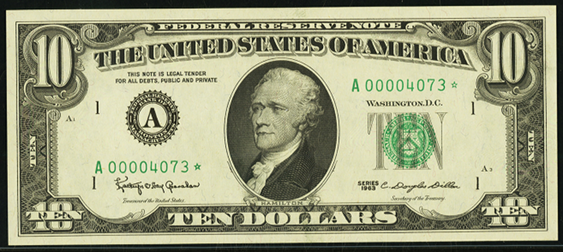 | See Also | If your note doesn't match try: 1. 1985 $10 Federal Reserve Note 2. 1988A $10 Federal Reserve Note 3. 1993 $10 Federal Reserve Note 4. 1995 $10 Federal Reserve Note |