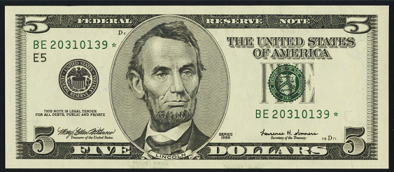 | See Also | If your note doesn't match try: 1. 1999 $5 Federal Reserve Note 2. 2001 $5 Federal Reserve Note 3. 2003 $5 Federal Reserve Note 4. 2003A $5 Federal Reserve Note 5. 2006 $5 Federal Reserve Note 6. 2009 $5 Federal Reserve Note |