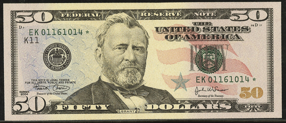 | See Also | If your note doesn't match try: 1. 2001 $50 Federal Reserve Note 2. 2004A $50 Federal Reserve Note 3. 2006 $50 Federal Reserve Note 4. 2009 $50 Federal Reserve Note |