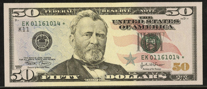 | See Also | If your note doesn't match try: 1. 2001 $50 Federal Reserve Note 2. 2004 $50 Federal Reserve Note 3. 2004A $50 Federal Reserve Note 4. 2006 $50 Federal Reserve Note 5. 2009 $50 Federal Reserve Note |