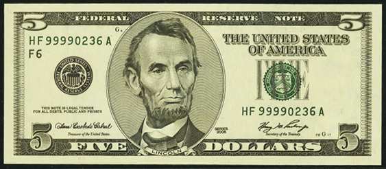 | See Also | If your note doesn't match try: 1. 2001 $5 Federal Reserve Note 2. 2003 $5 Federal Reserve Note 3. 2003A $5 Federal Reserve Note 4. 2009 $5 Federal Reserve Note |