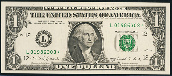 Star serial number AND fancy serial numbers from any bank. Important: The note must be in perfect condition. Examples: A12345678*, C01010101*, G88888888* etc.